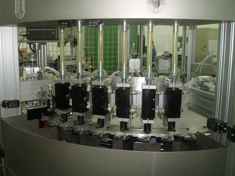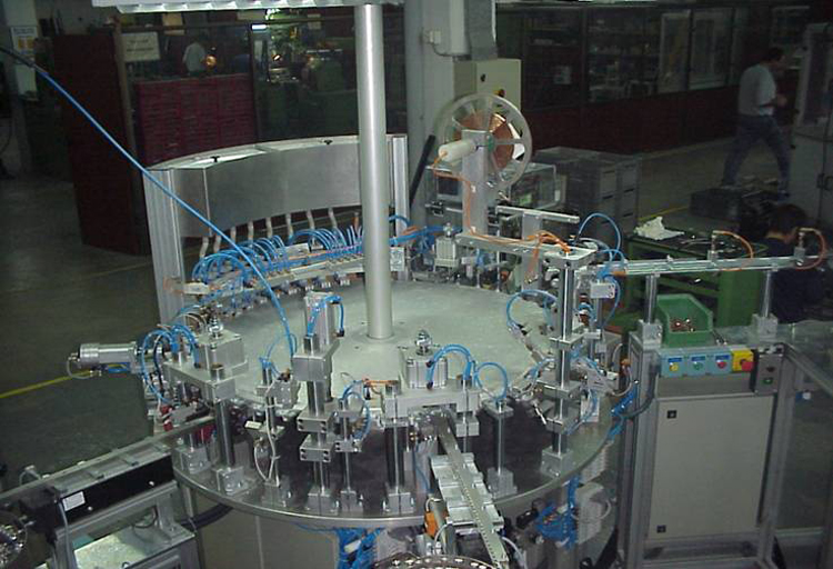 Máquina rotativa con sistema de alimentación por vibrador (lineal y circulas) para la fabricación de fusibles cilíndricos de diferentes tallas. Incluyendo la soldadura con electrodo para la inserción de melting. Sistema de iluminación propia y control total de la máquina mediante pupitre con control de producción y paros de máquina
